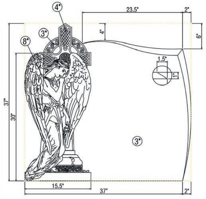 Our experienced staff work closely with our craftsmen and will take your initial concept and produce a cad drawing for your approval, once approved, we will create your bespoke, finished memorial. We are also able to create individual etched designs on any granite memorial, this would include photos of your loved one if you wish.